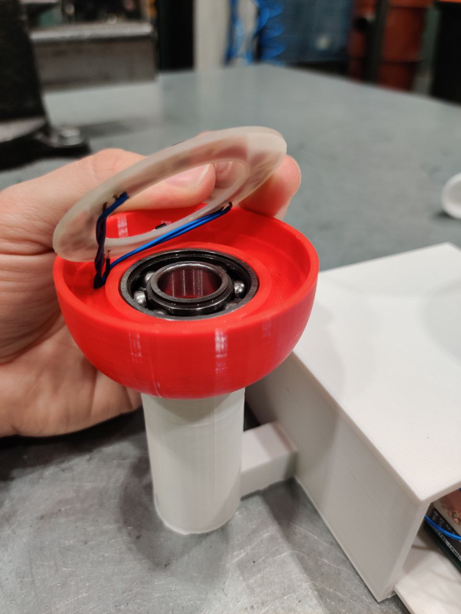 - Speed sensor: in the speed sensor the magnet activates the Hall-sensor when the last one is bypassed. The sensor must be of unipolar type and the magnet has to be correctly assembled. 34-40 cm long wires are soldered to the circuit board. Sensor’s circuit board and bearing are placed lower 3D-printed part. Magnet and windmeter spoons are attached to the upper 3D-printed part. Lower part is connected to the Arduino’s case by a 3D-printed pipe.