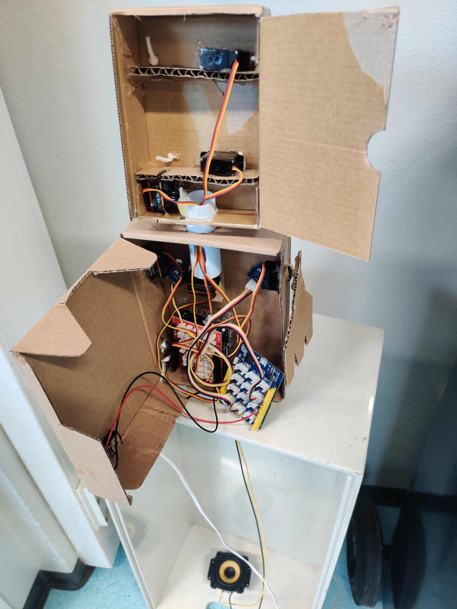 - 3. Cut another hole for the robot head and hot-glue another servomotor for it inside.